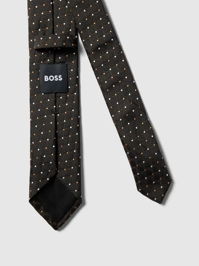 Die Krawatte von BOSS ist aus reiner Seide gefertigt und in klassischer Form gehalten. Sie kommt mit Label-Detail auf der Innenseite und Allover-Muster.