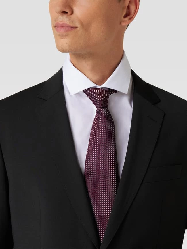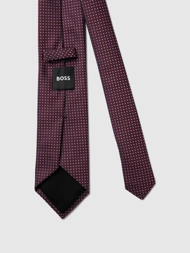 Die Krawatte von BOSS ist aus einem strapazierfähigen Material-Mix mit Seiden-Anteil gefertigt. Sie zeigt sich in klassischer Form und mit feinem Allover-Muster.