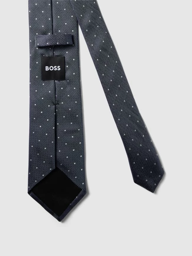 Die Krawatte von BOSS ist aus reiner Seide gefertigt und in klassischer Form gehalten. Sie kommt mit Allover-Muster und Label-Detail auf der Innenseite.