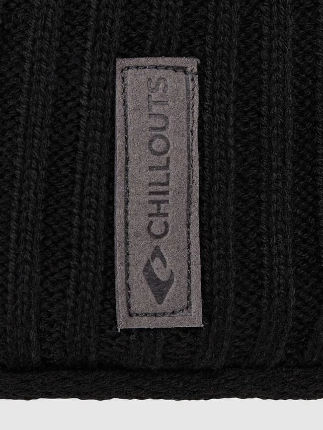 Die Beanie von CHILLOUTS ist aus reiner Baumwolle gefertigt. Sie zeigt sich mit Logo-Badge und Teddyfutter.