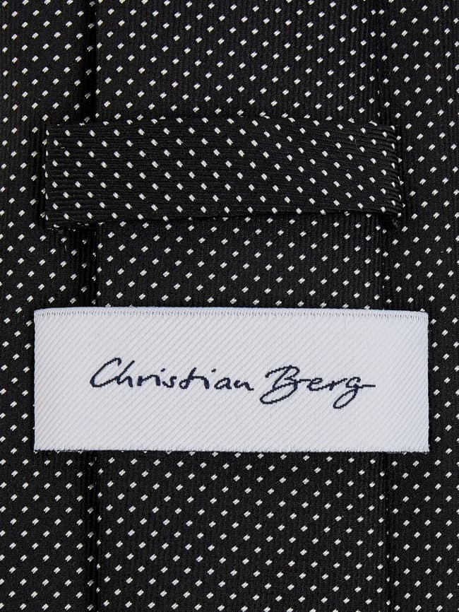 Die Krawatte von Christian Berg Men ist aus reiner Seide gefertigt. Sie kommt in klassischer Form mit Webmuster.