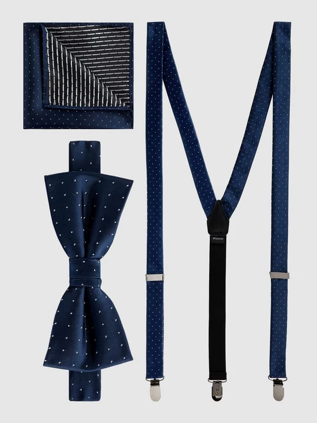 Cinque Fliege, Einstecktuch Und Hosenträger Im Set Modell ‚Carlo‘ – Marineblau