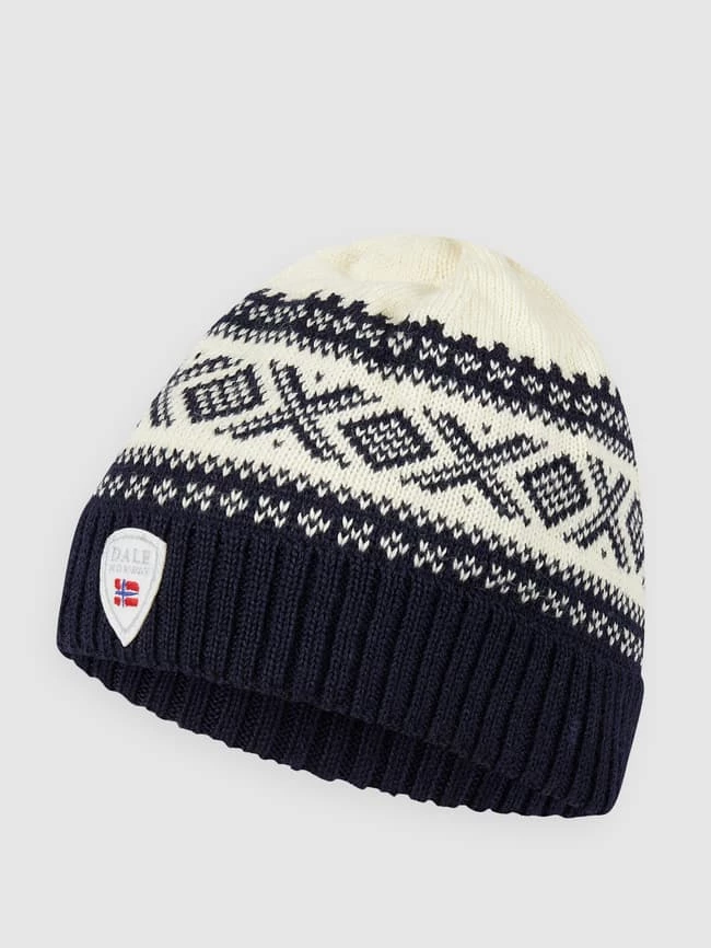 Die Mütze von Dale of Norway ist aus reiner Wolle gefertigt. Sie zeigt sich mit eingestricktem Muster und Logo-Aufnäher.