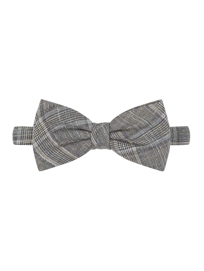Die vorgebundene Fliege von DIGEL ist aus einer Wollmischung mit Baumwoll-, Leinen- und Stretch-Anteil gefertigt. Sie zeigt sich mit verstellbarer Kragenweite und Hakenverschluss. Das Modell kommt im Set mit einem Einstecktuch.