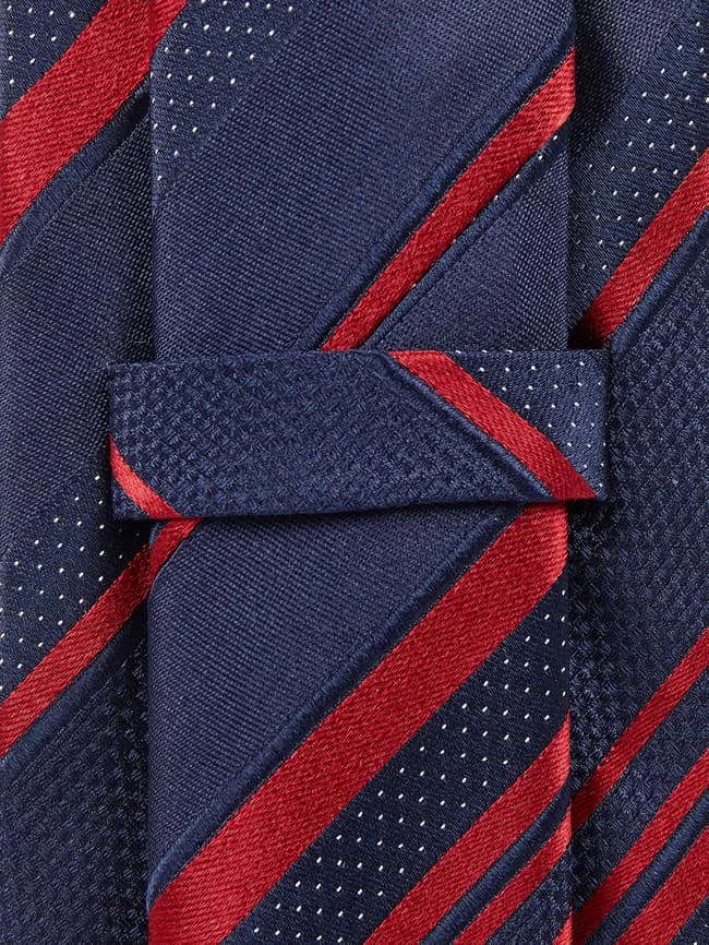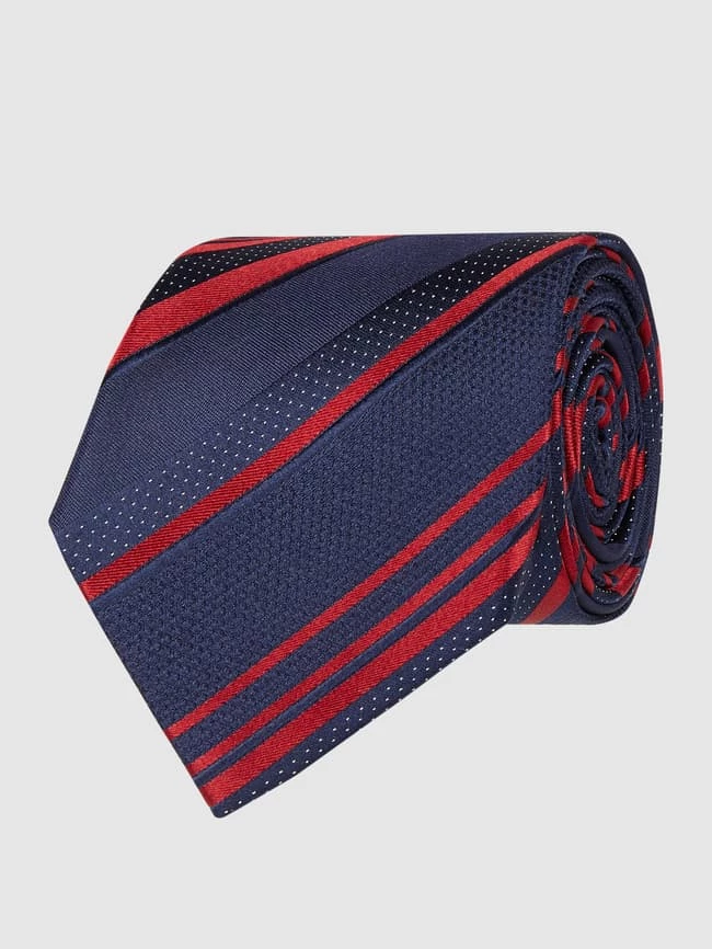 Die Krawatte von ETERNA ist aus reiner Seide gefertigt. Sie kommt in breiter Form mit strukturiertem Streifenmuster.