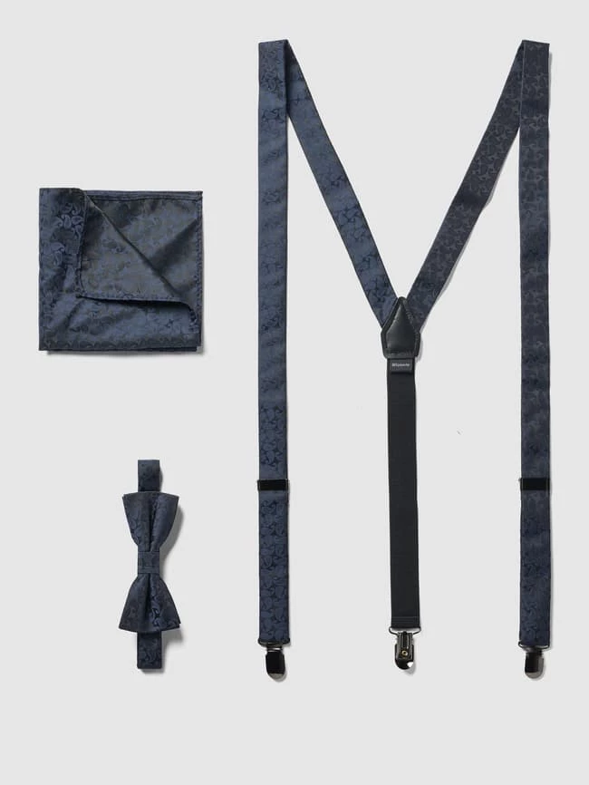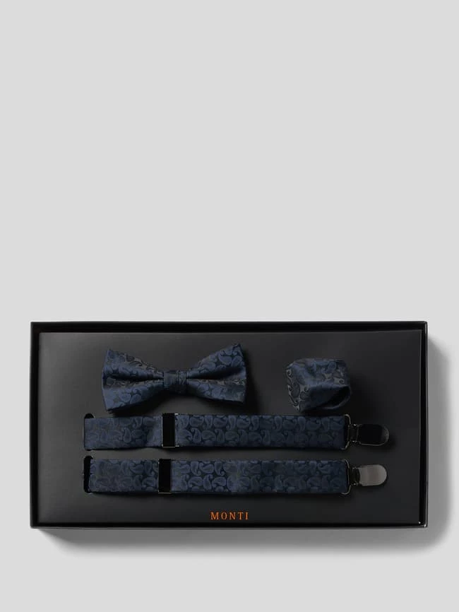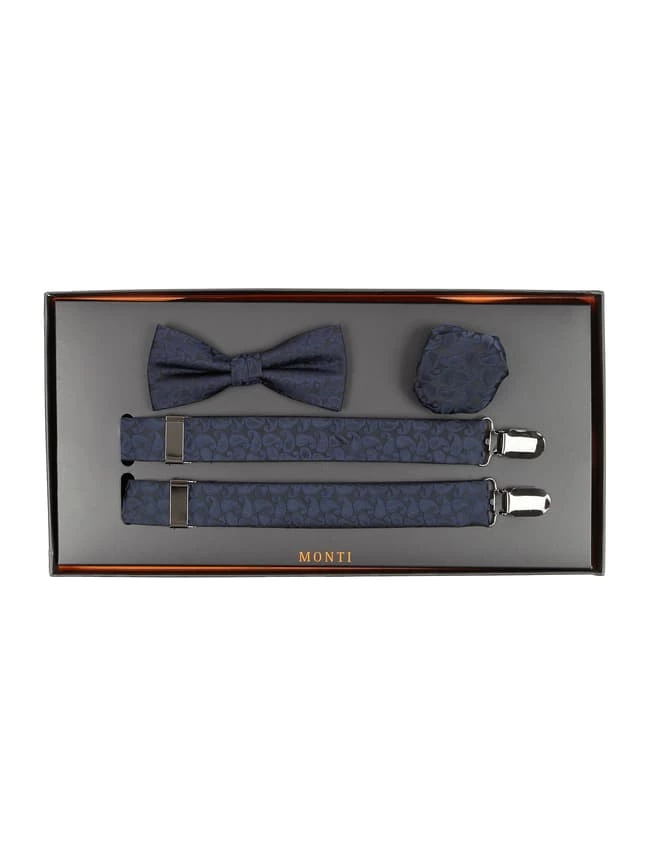 Monti Fliege, Einstecktuch Und Hosenträger Im Set – Dunkelblau