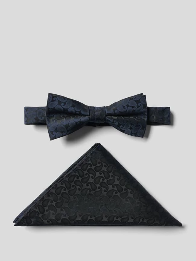 Das Set aus Fliege, Einstecktuch und Hosenträgern von MONTI ist aus strapazierfähigem Material gefertigt und zeigt sich mit Paisley-Dessin. Die Hosenträger sind in Y-Form gehalten.