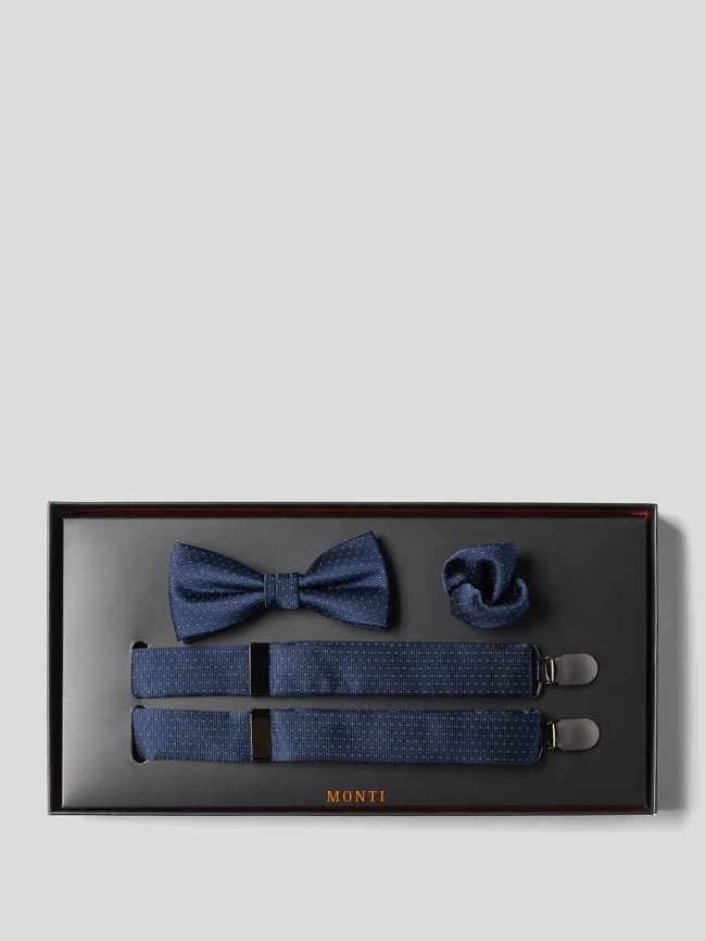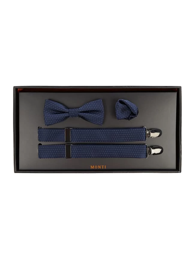 Monti Fliege, Einstecktuch Und Hosenträger Im Set – Marineblau