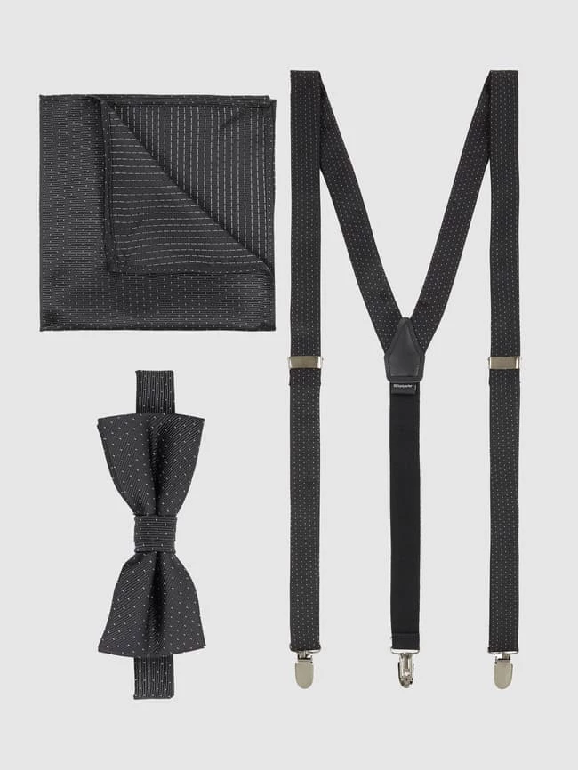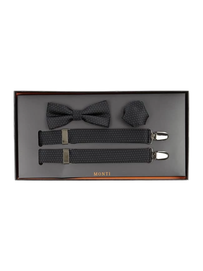 Monti Fliege, Einstecktuch Und Hosenträger Im Set – Schwarz