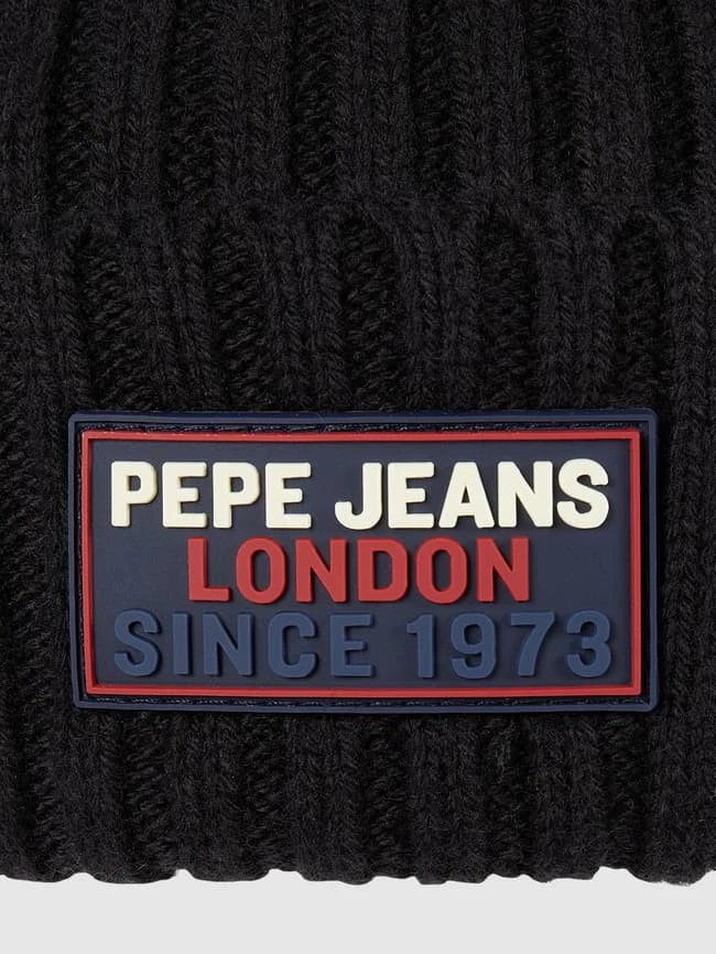 Die Mütze von Pepe Jeans ist aus einer Baumwollmischung mit Woll-Anteil gefertigt. Sie zeigt sich mit Rippenstruktur und Logo-Aufnäher.