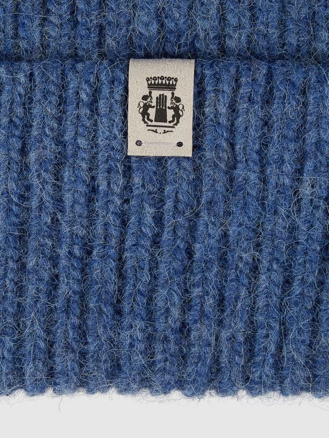 Die Mütze von Roeckl ist aus einer Wollmischung mit Alpaka- und Hanf-Anteil gefertigt. Sie zeigt sich mit Rippenstruktur und Umschlag.