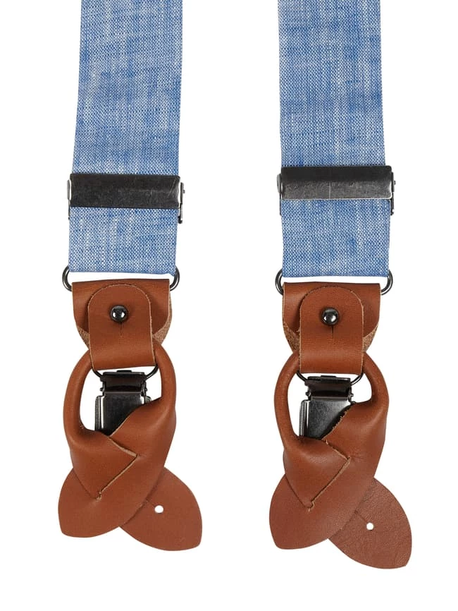 Die Hosenträger von Prince Bowtie sind aus reinem Leinen gefertigt und in Y-Form gehalten. Sie kommen im Set mit einer vorgebundenen Fliege.