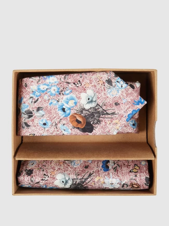 Die Krawatte von Prince Bowtie ist aus einem Seide-Baumwoll-Mix gefertigt und in schmaler Form gehalten. Sie kommt im Set mit einem Einstecktuch.