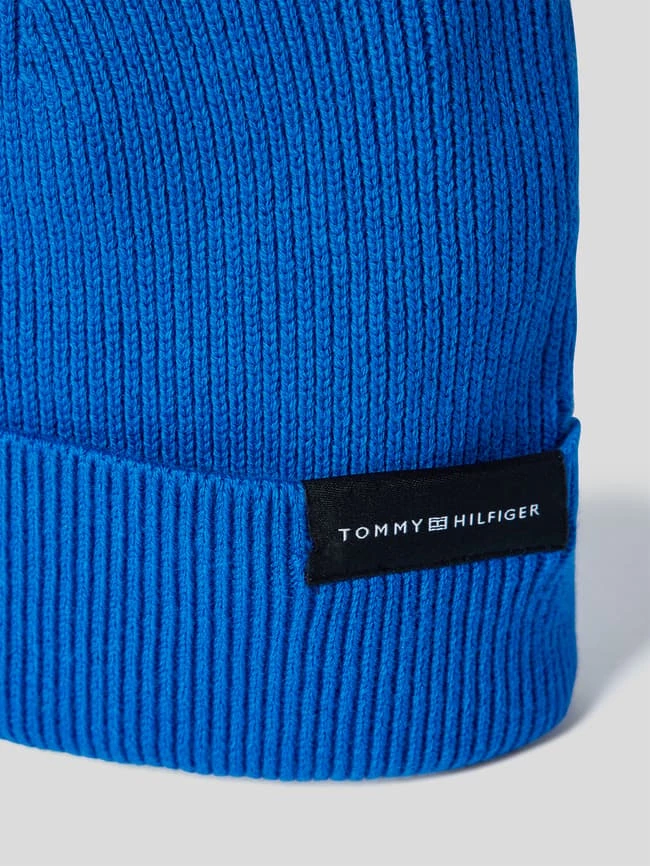 Die Mütze von Tommy Hilfiger ist aus einem Baumwoll-Woll-Mix gefertigt. Sie kommt im unifarbenen Design mit Rippenstruktur und kontrastiven Label-Details sowie Umschlag.