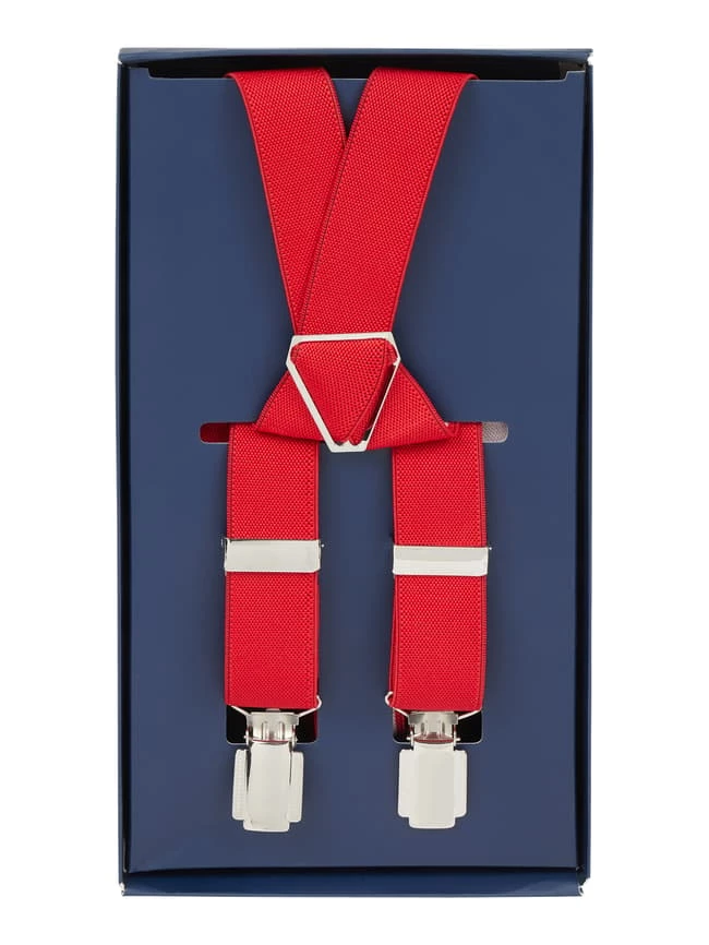 Die Hosenträger von Willen sind aus Satin gefertigt und in Y-Form gehalten. Sie kommen im Set mit vorgebundener Fliege.