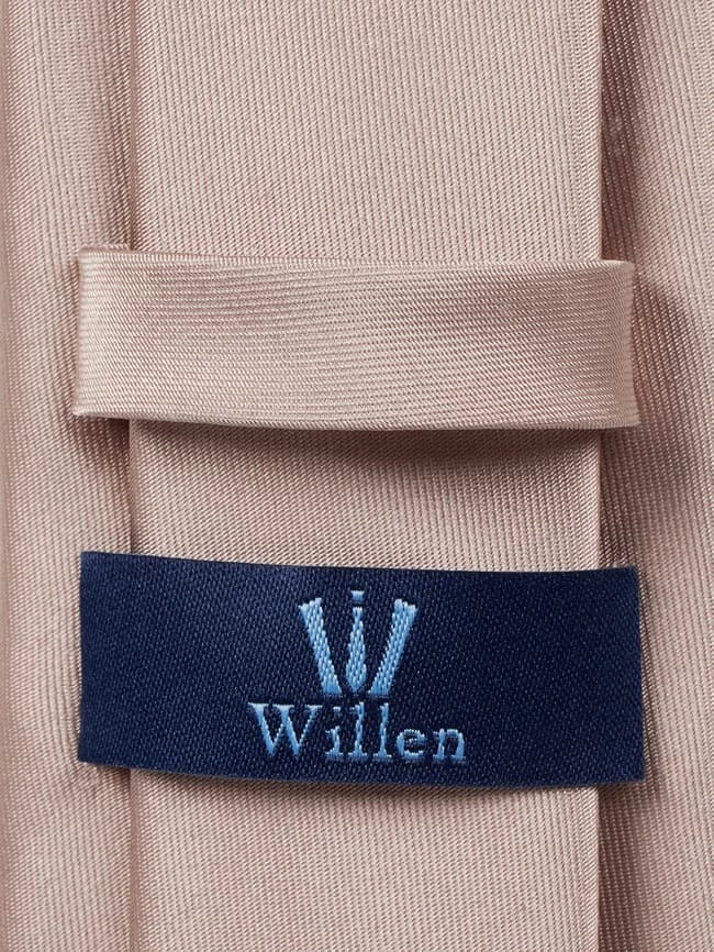 Die Krawatte von Willen ist aus reiner Seide gefertigt. Sie kommt in schmaler Form mit leicht schimmernder Textur.