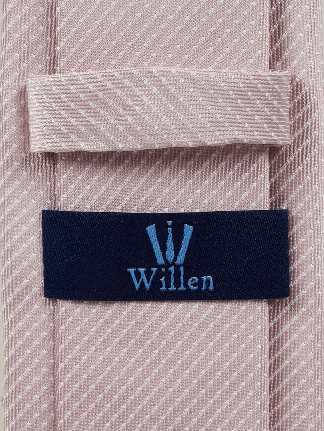 Die Krawatte von Willen ist aus reiner Seide gefertigt. Sie zeigt sich in schmaler Form mit feinem Webmuster.