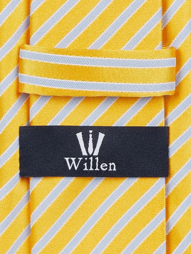 Die Krawatte von Willen ist aus reiner Seide gefertigt. Sie kommt in klassischer Form mit Streifenmuster.
