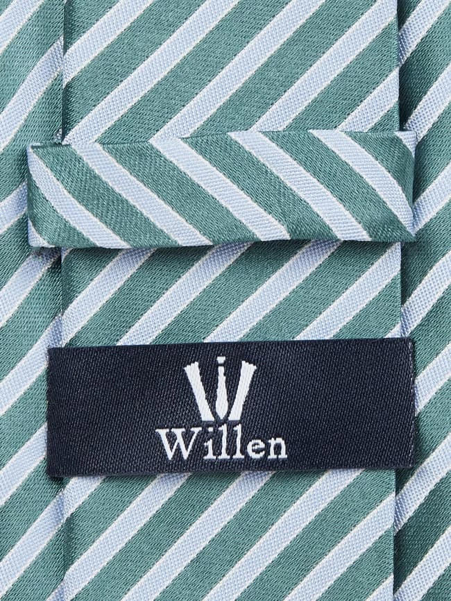 Die Krawatte von Willen ist aus reiner Seide gefertigt. Sie kommt in klassischer Form mit Streifenmuster.