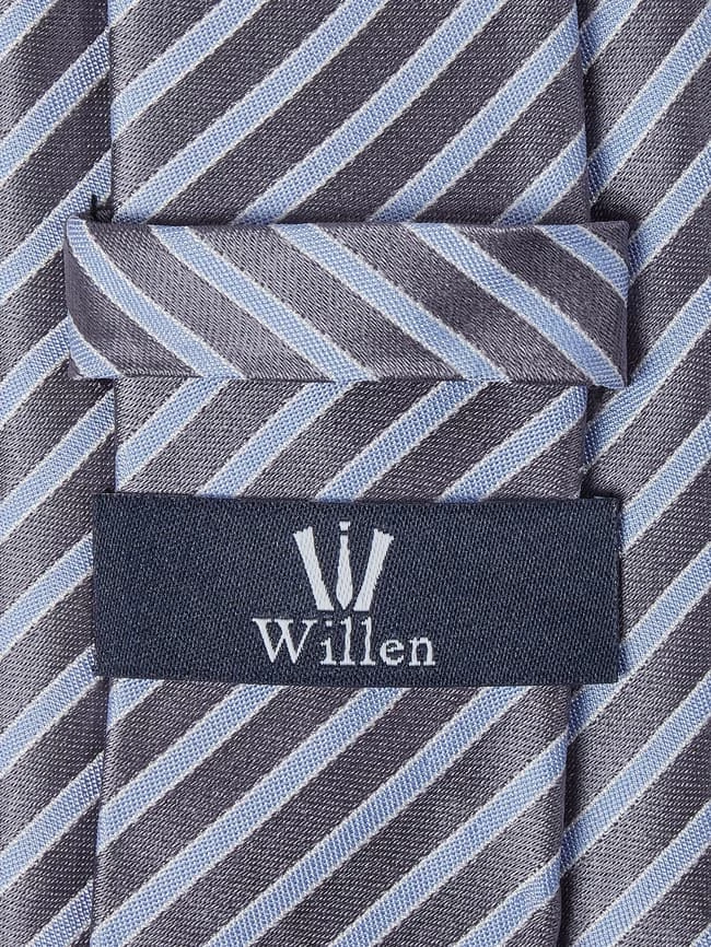 Die Krawatte von Willen ist aus reiner Seide gefertigt. Sie kommt in klassischer Form mit Streifenmuster.