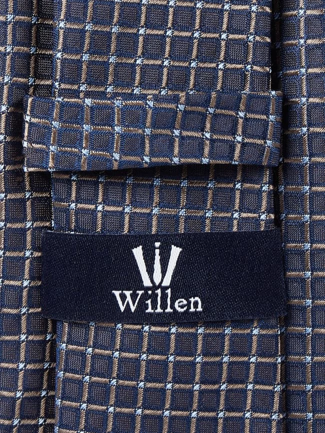 Die Krawatte von Willen ist aus reiner Seide gefertigt. Sie kommt in klassischer Form mit Gitterkaro.