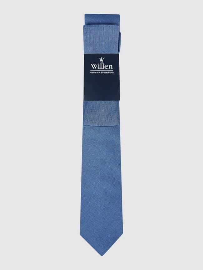 Die Krawatte und das Einstecktuch von Willen sind aus reiner Seide gefertigt. Sie zeigen sich mit strukturiertem Muster.